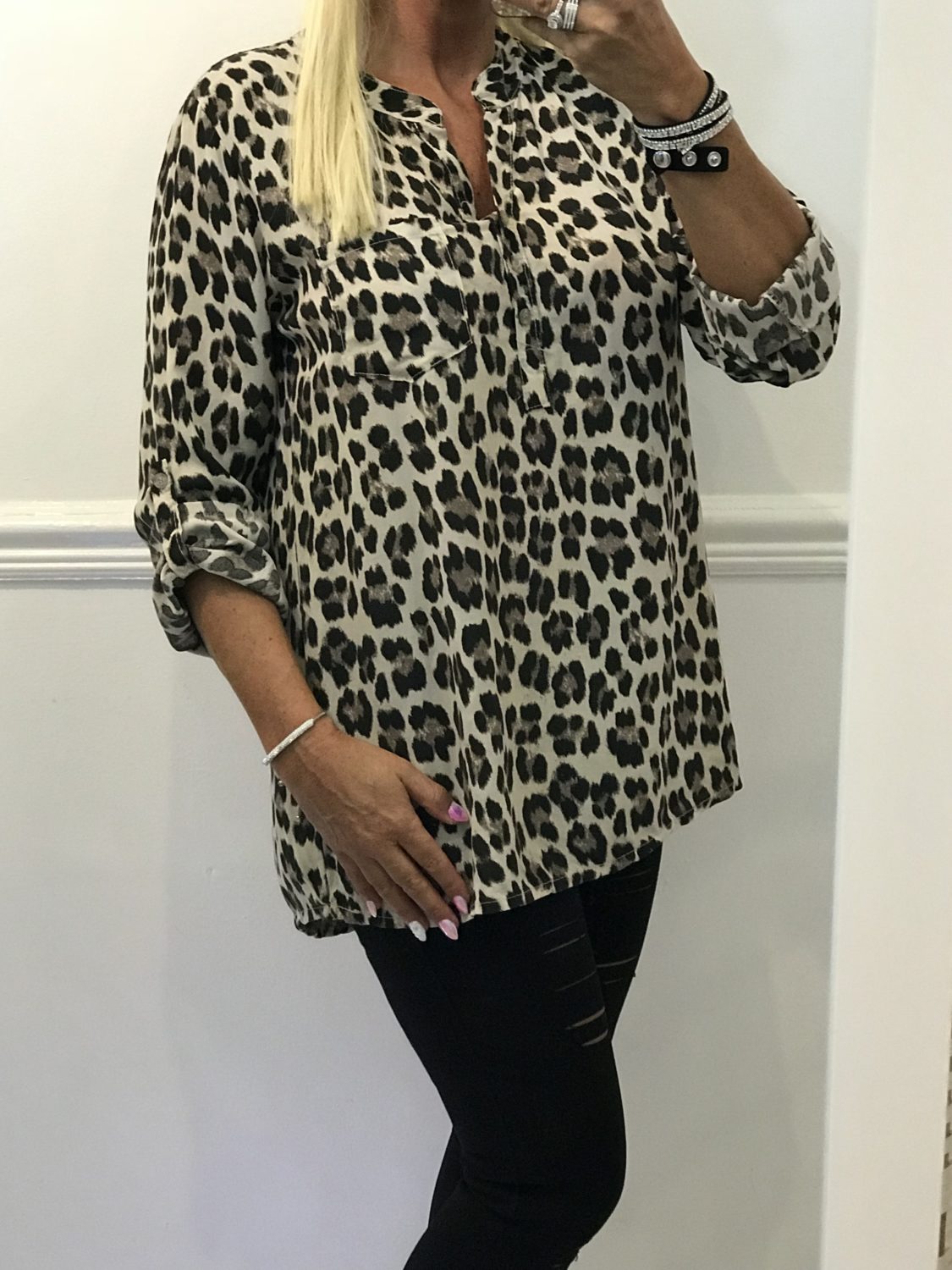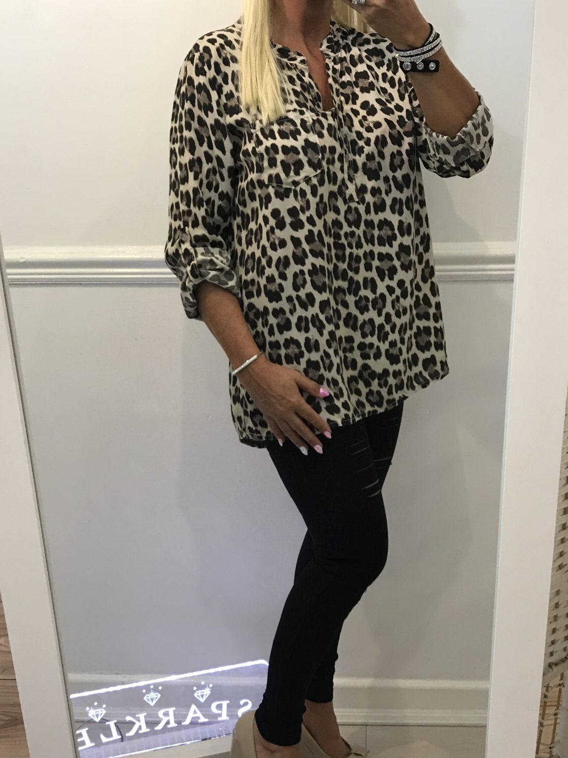 LEOPARD PRINT LADIES BLOUSE BUTTON TOP