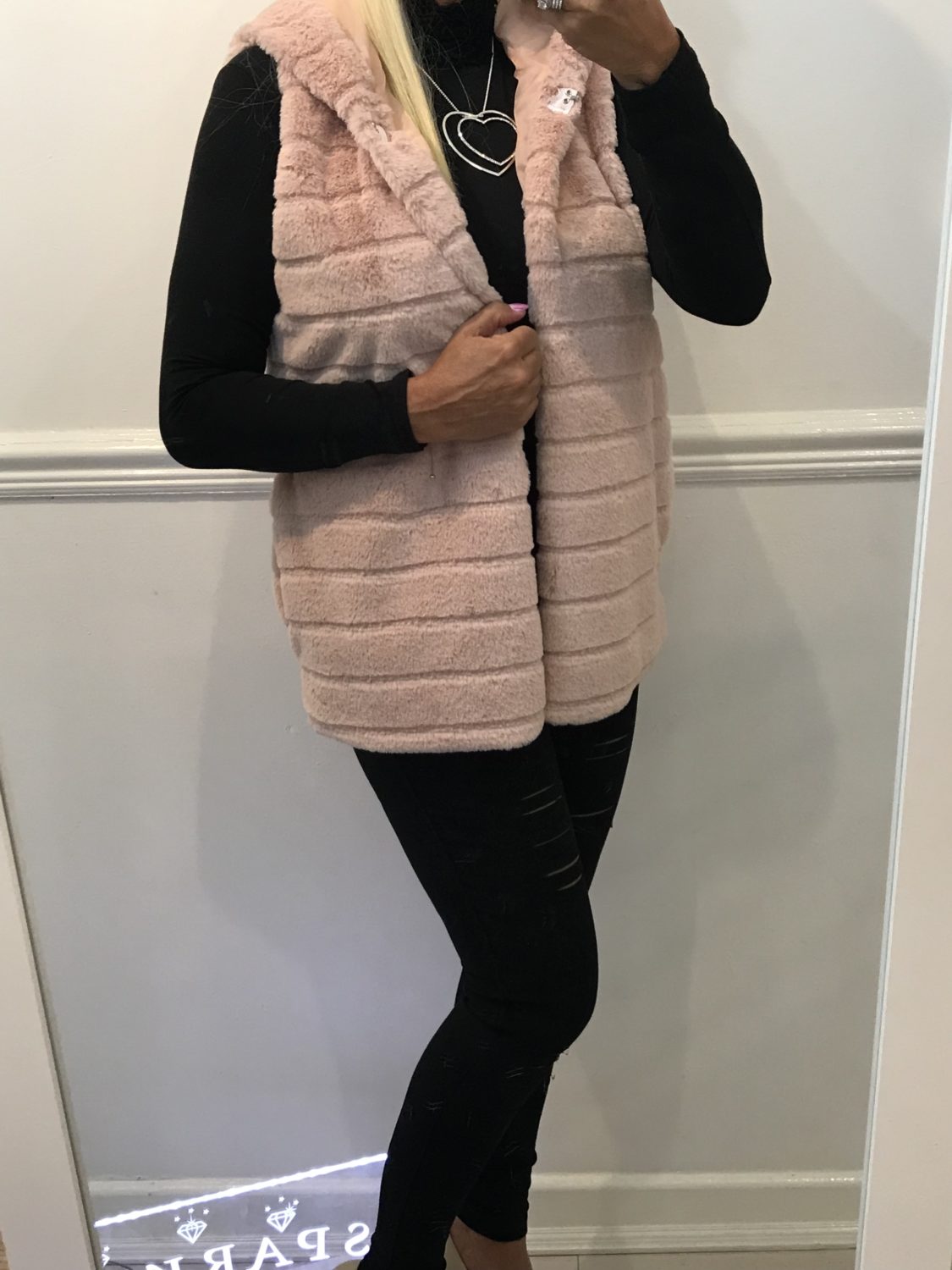 PALE PINK SOFT FAUX FAR HOODED GILET