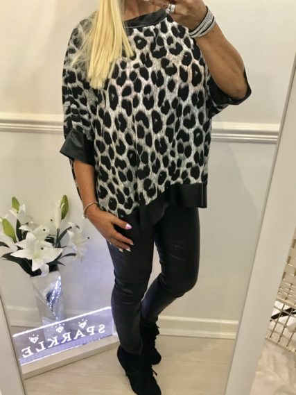 LADIES GREY ANIMAL BLACK PVC TRIM TOP