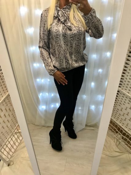 GREY SNAKE PRINT BOW TIE BLOUSE