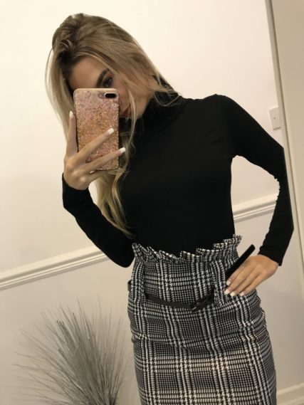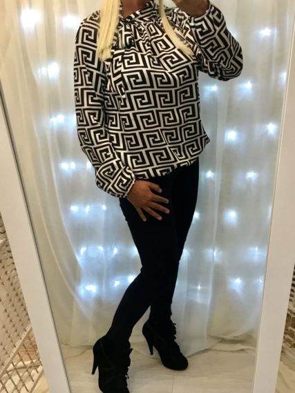 BLACK/WHITE BOW TOE GEO BLOUSE